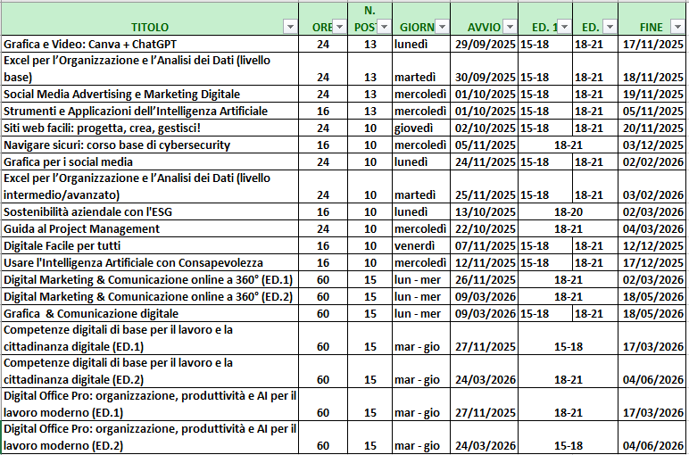 Le iscrizioni sono aperte dal 18/07/2025. Avvio corsi: da settembre 2025.